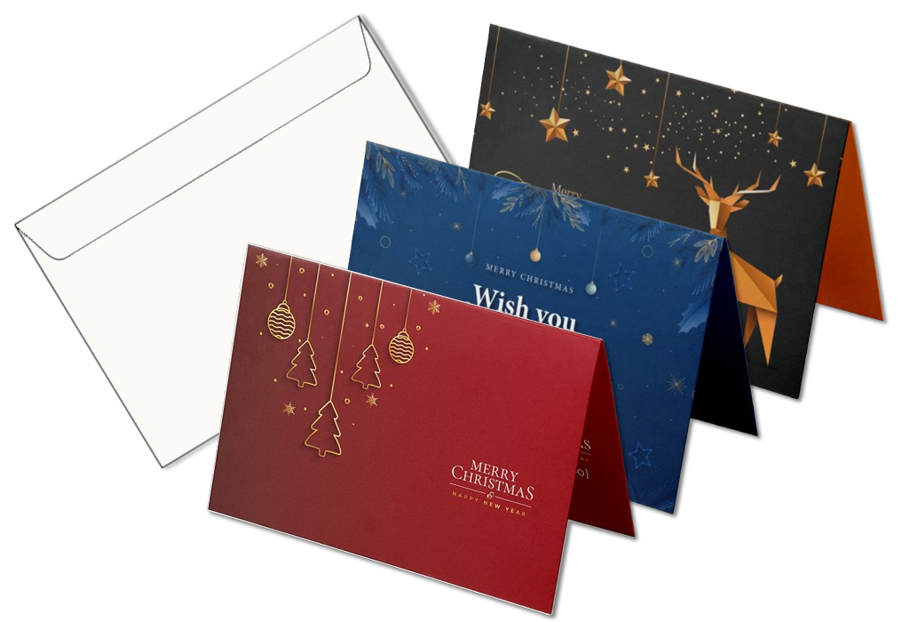 Vores gavekort er dobbeltfoldede kort i A6 format, og trykt på 280 gram FSC®-certificeret papir.