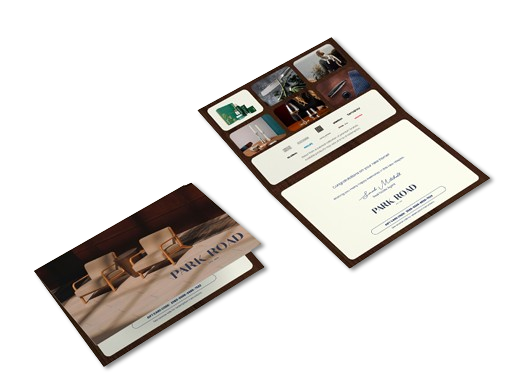 Modtag gavebeviserne printet på dobbeltfoldede A6 kort på 280g papir, online som PDF-filer eller som Excel-ark med unikke koder.